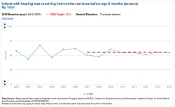 Reports on the Healthy People 2020 objective to increase the proportion of infants with confirmed hearing loss who receive intervention services before 6 months of age.