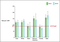 This chart depicts the prevalence of (likely) noise-induced hearing loss from 2 time periods in adults (20–69 years) by race/ethnicity and sex (gender).